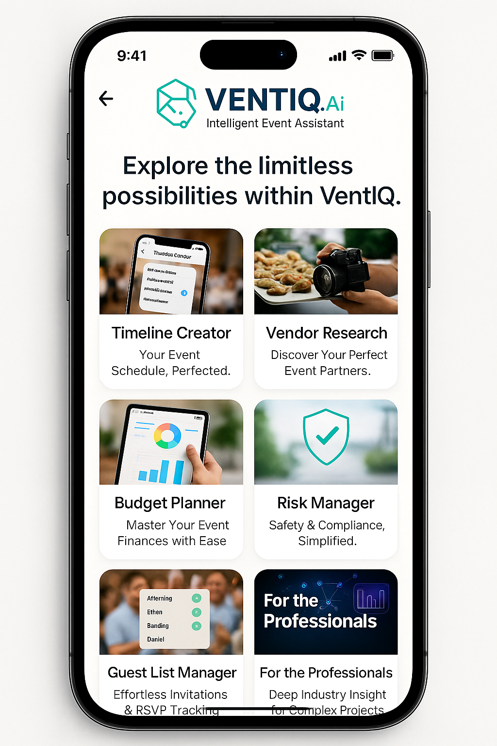 From grand galas to intimate gatherings, VentiQ.Ai is your all-in-one solution for seamless event management.